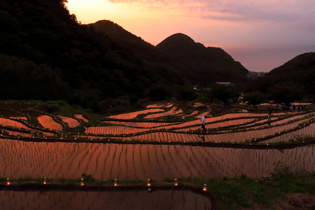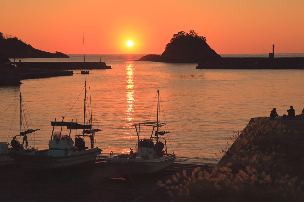 松崎町の「石部の棚田」の夕景、「仁科漁港」の夕景、「千貫門」と富士の夕景などを中心にご紹介しています。