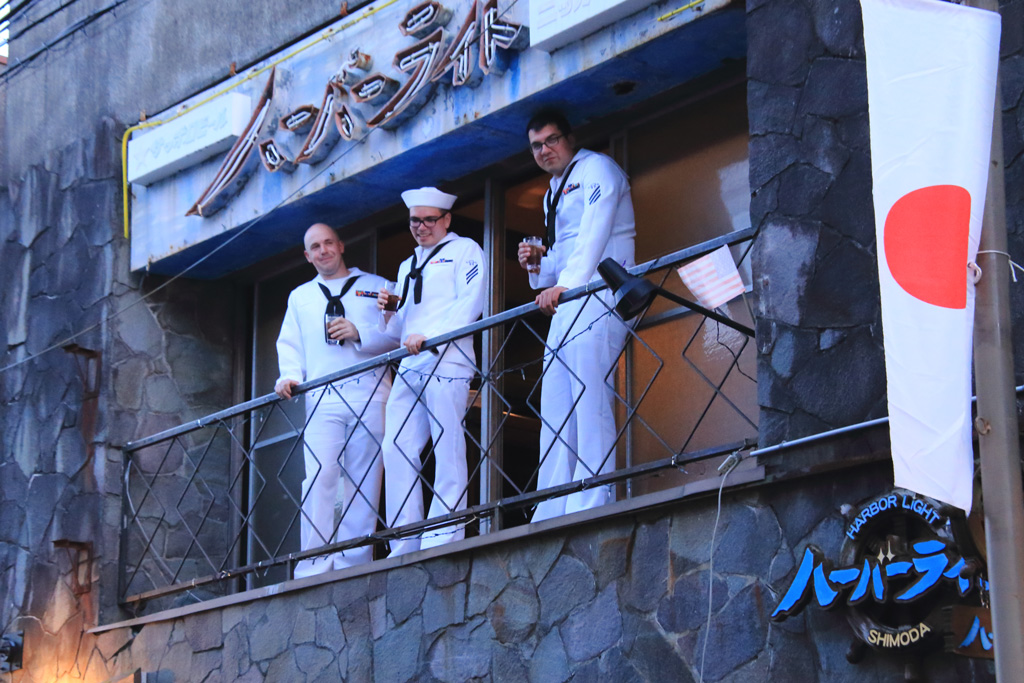 黒船祭りに参加した米軍艦艇を見つめる少女 |