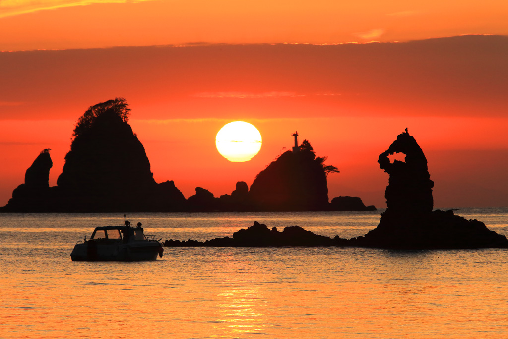 「大田子海岸」の夕景は、日本夕日10選に選ばれたことで広く知られており、見ごろとなる春分と秋分の前後一週間は大勢の写真マニアが訪れます。