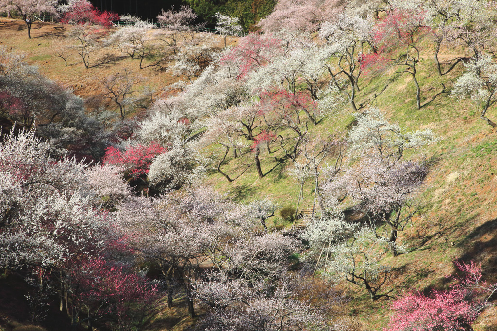 初春の「吉野梅郷」白梅紅梅、「塩船観音」のツツジと蓼科のユリ園などをご紹介します。
