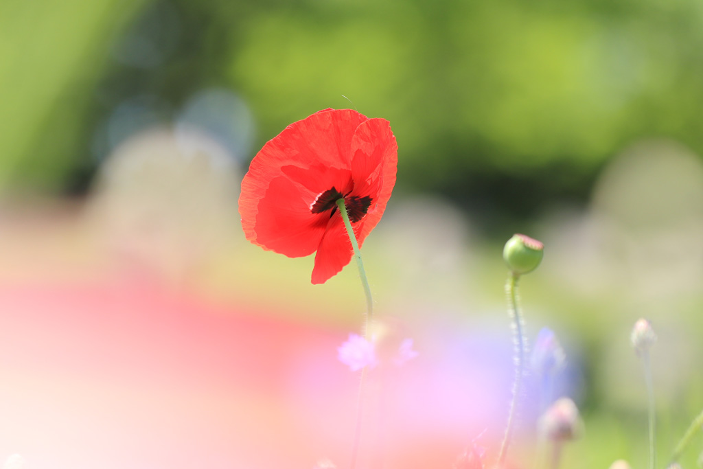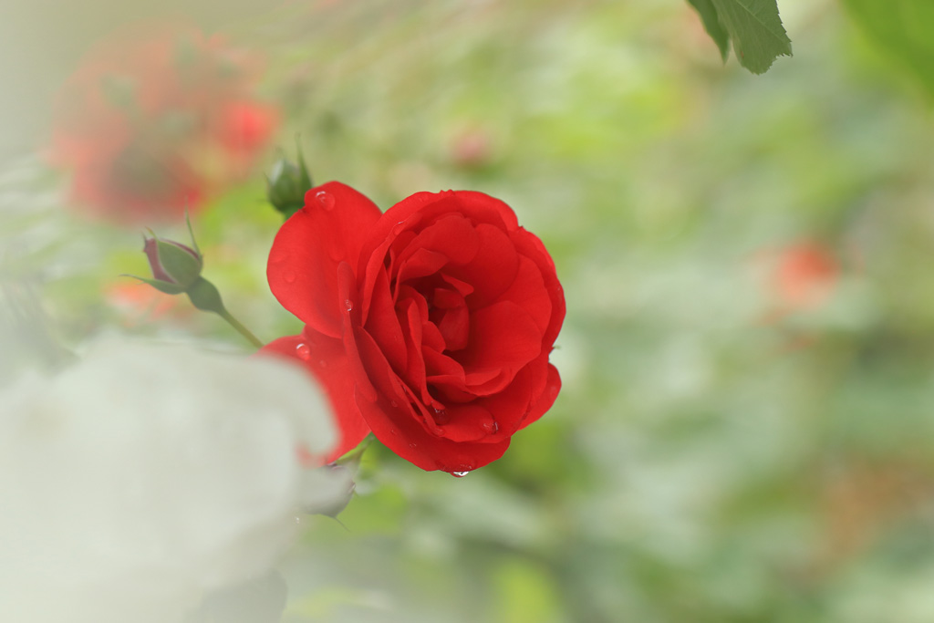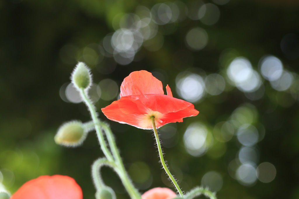一輪の花に焦点を合わせ、周囲をなるべくぼかして撮った写真ですが、三脚を使用しないために、写真がぶれないように撮るのが難しいです。