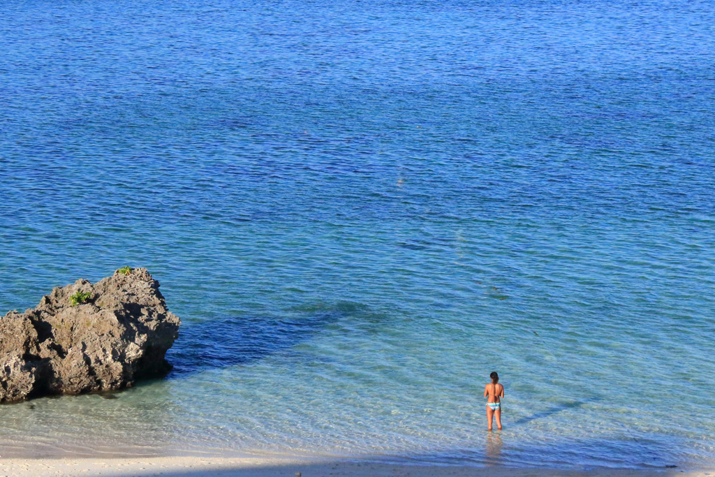 クラブメッド石垣島から川平湾まで1時間半ほどかかりますが、途中出会ったのはフランス人1人、専門のカメラマンを従え結婚の前撮りをする新郎新婦の一行と、海水浴に来ていた地元の家族だけでした。