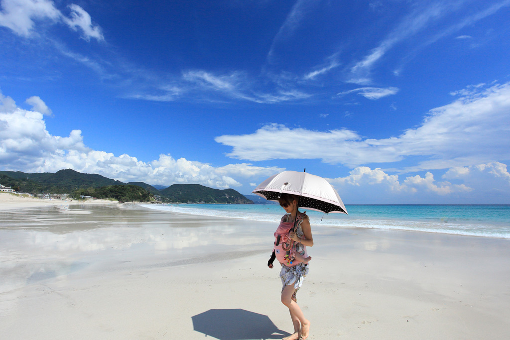 伊豆下田市近郊の「白浜海岸」は、名前が示す通り純白に近い白砂の海岸で、海水浴シーズン以外でも立ち寄る人が多い人気の海岸です。