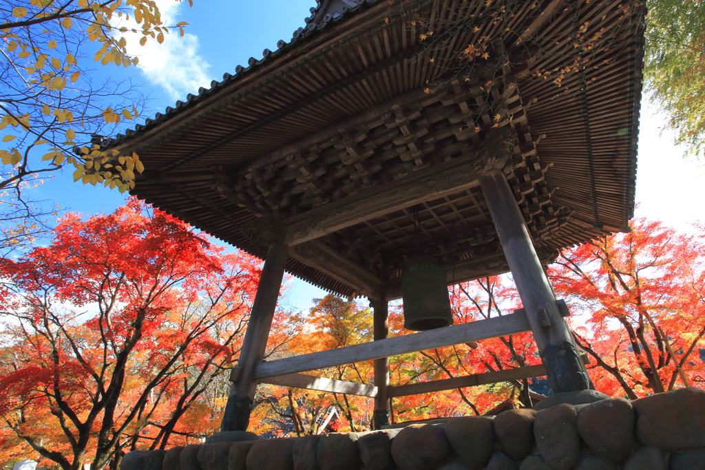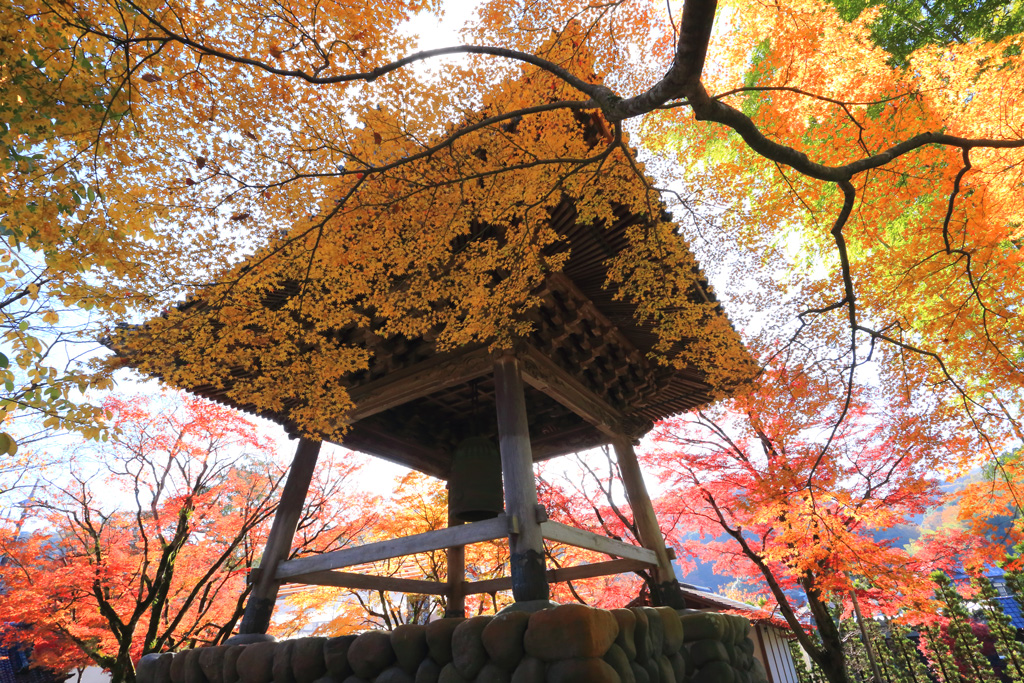 | 修禅寺の鐘楼を囲む紅葉風景 |
