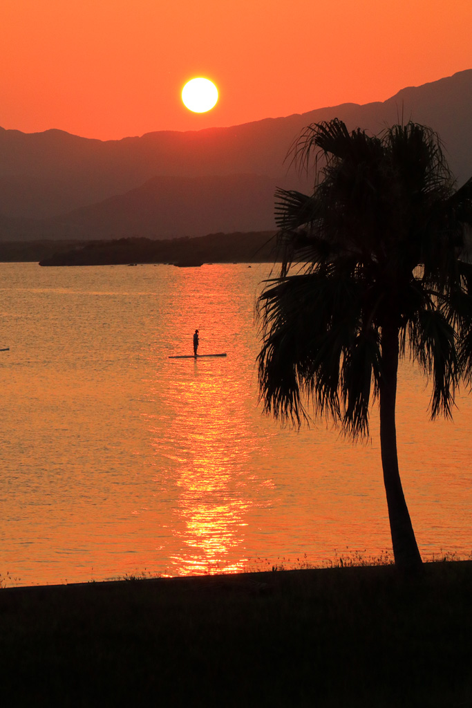 | 夕日の光線を横切るSUP |