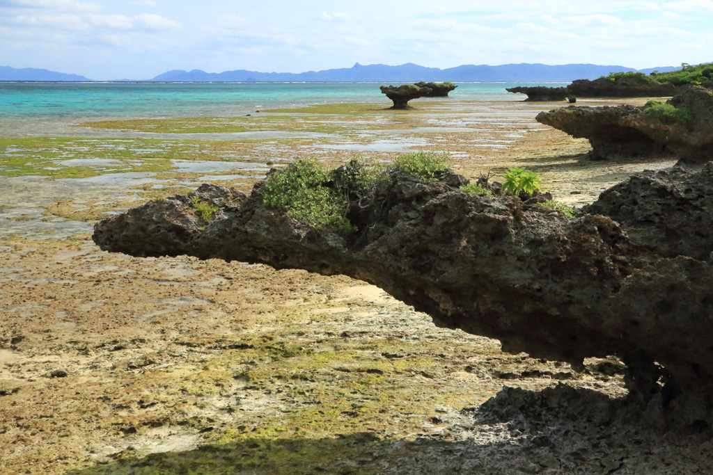 | 奇岩が点在する干潮時の川平海岸 | |