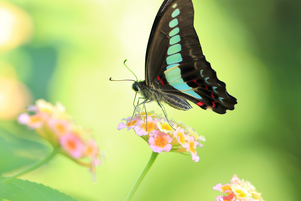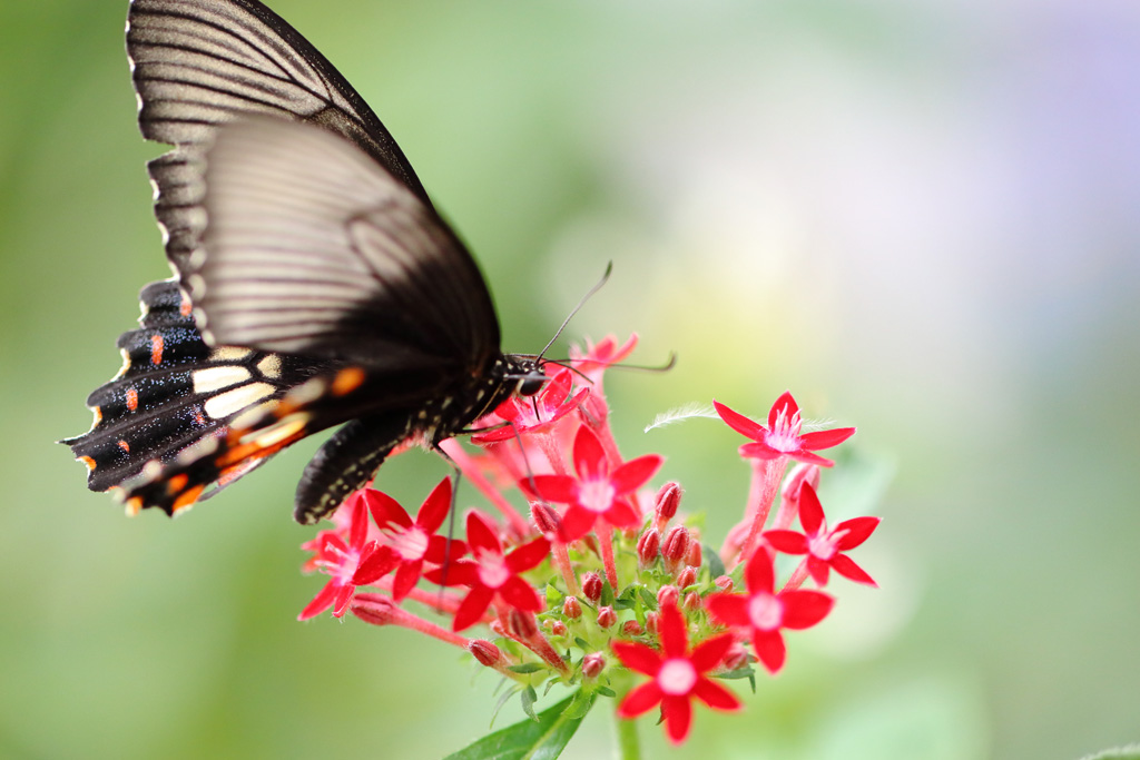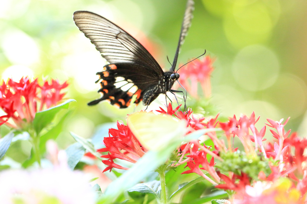 花を訪れる蝶は絶えず羽を動かしているため、クローズアップした写真をぶれないように撮影するのが難し被写体です。