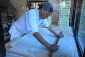 お店の外から見えのるそば打ち場では、そば打ちの真っ最中。
